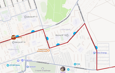 с. Косой Брод – Совхозная – Розы Люксембург (ост. Школа № 18, Р.Люксембург 87) – Декабристов (ост. Розы Люксембург) – Коммунистическая – Свердлова – Сталеваров – Ленина – Вершинина.